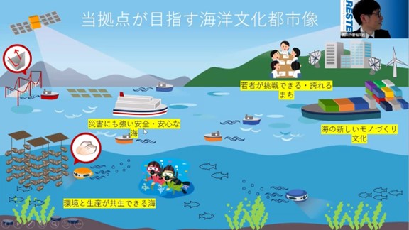 このような取り組みにおいて我々の拠点が目指す海洋文化都市像とは、災害に強い、環境と共生ができる、新しいモノづくり文化、また、若者が挑戦できる・誇れる街です。呉が一つの見本となって海洋文化都市を作るということに、リモートセンシングが一役買うことを目指しております。