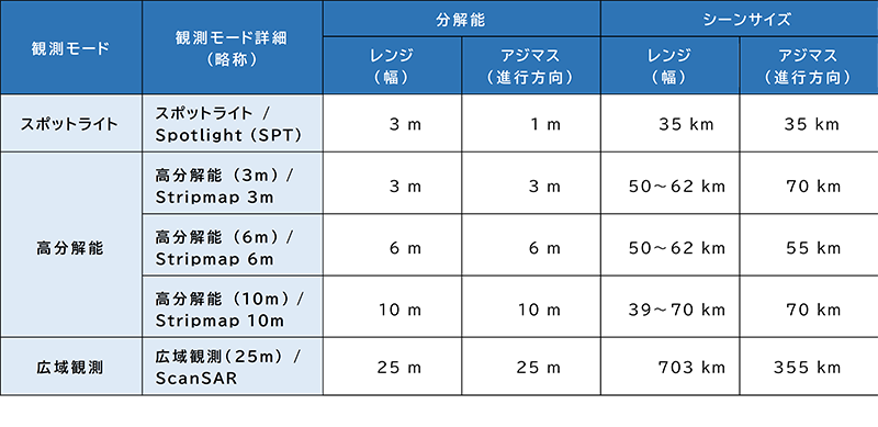 ※1シーンの観測幅などは下表の「シーンサイズ」でご確認ください